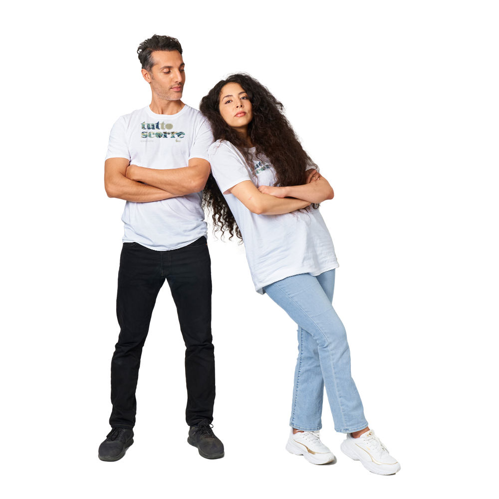 Una classica t-shirt unisex perfetta per qualsiasi stile. Realizzata in cotone pesante con scollo e maniche a doppia cucitura.