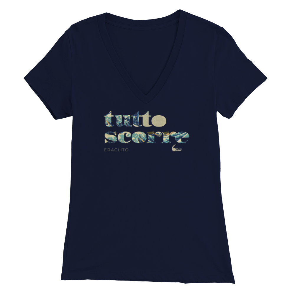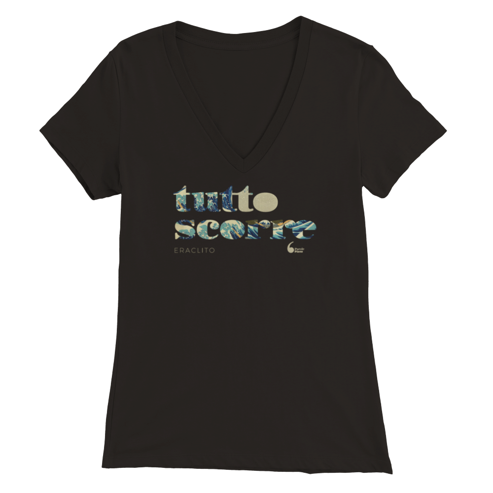 La T-Shirt per donna con la frase "Tutto scorre" di Eraclito disponibile anche con scollo a V. Questa t-shirt da donna con veste in modo perfetto. Il capo è caratterizzato da una moderna vestibilità slim fit, maniche corte e cotone superiore pettinato e ringspun Airlume, che la rende perfetta come tela bianca per la stampa.