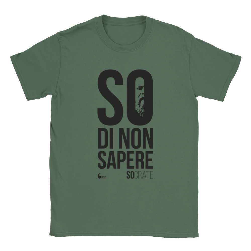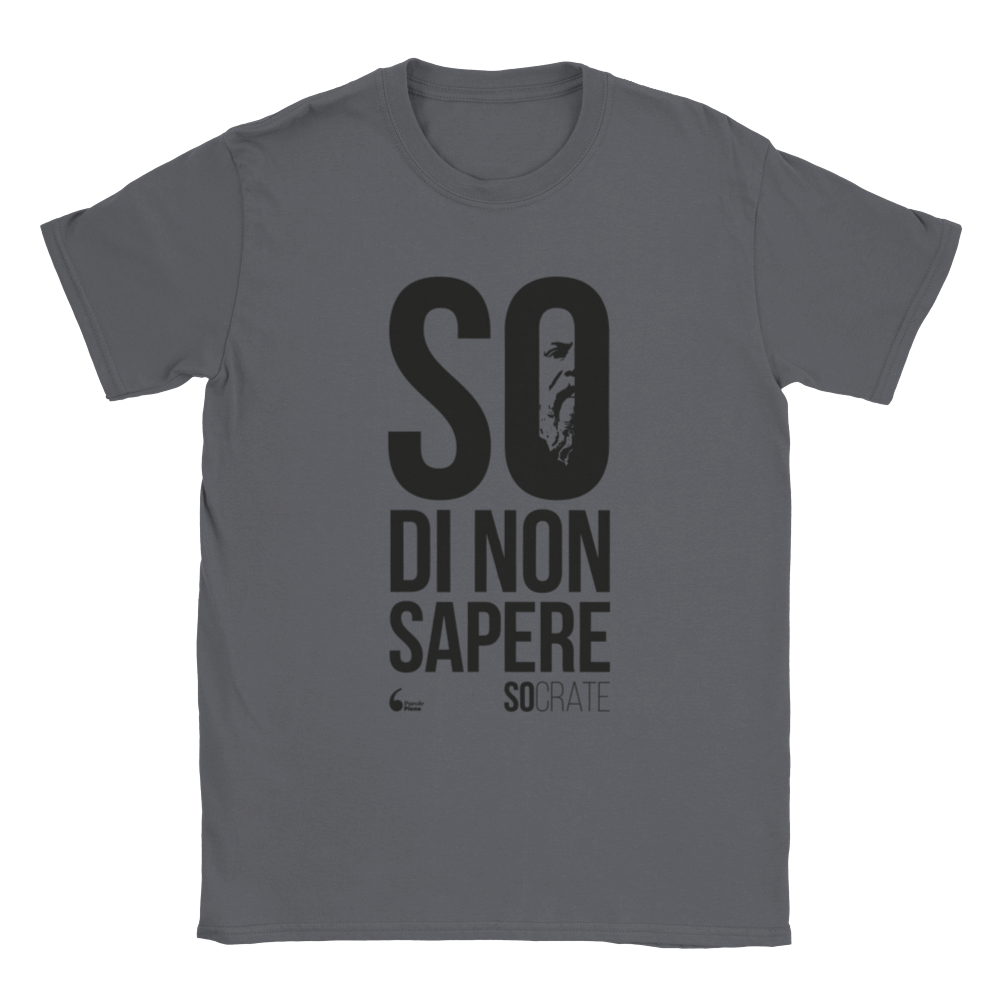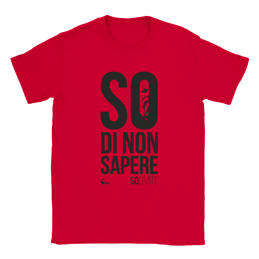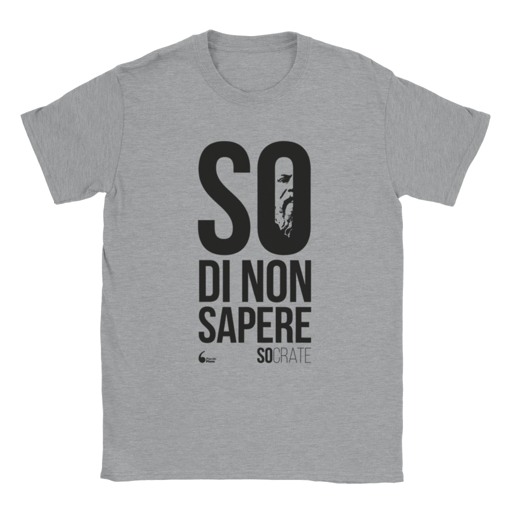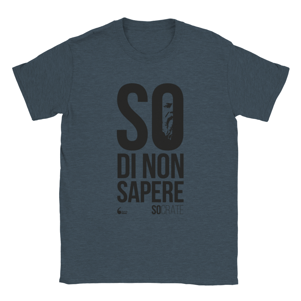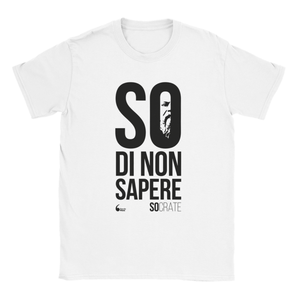 Indossa il paradosso socratico per eccellenza: sei consapevole di non sapere abbastanza e vuoi farlo conoscere a quelli che credono di sapere sempre tutto! Potresti gridarlo in giro, ma è meglio farlo indossando questa classica T-Shirt unisex.